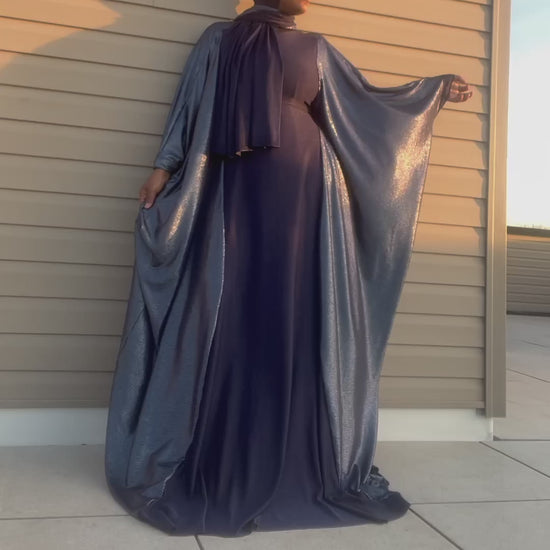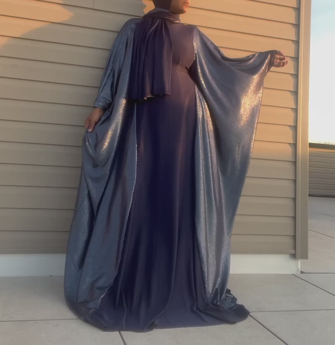 This kaftan is definitely a statement piece, two toned metallic blue and navy blue combo. This is the perfect piece for a special occasion.